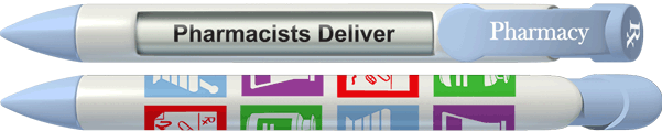 "Pharmacy" Greeting Pen® provides a fun way to highlight the value of Pharmacies. Give your Pharmacist a smile every time they write. Pen features 4 messages that rotate with every click of this pen: